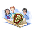 The next morning the trio meet in the common room and, after taking down one of Fred and George's advertising posters, Hermione learns of the argument with Seamus and reveals that she was having the same problem with Lavender Brown about whether Harry was telling the truth about Voldemort's return. That morning at breakfast, Harry learns from Angelina Johnsonthat she has replaced Oliver Wood as the captain for their Quidditch team and will be holding tryouts on Friday to recruit a new player to fill Oliver's old position as Keeper. Harry reveals that he has cancelled his subscription to the Daily Prophet out of disgust.The trio then meet with Fred and George and Hermione insists they cannot advertise to test their joke products on students. The twins bring up the fact that this year is important for the three of them since they will be taking their O.W.L.s. When the twins reveal they weren't sure if they wanted to attend their seventh year for their N.E.W.T.s, George almost lets it slip on why they don't need to take them, though they and Harry cover this up as the twins leave.